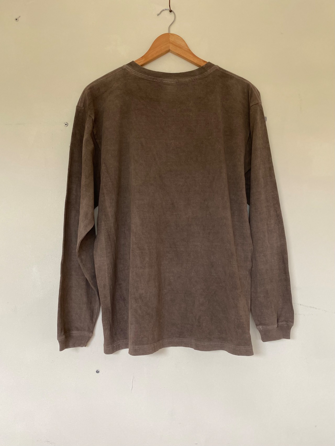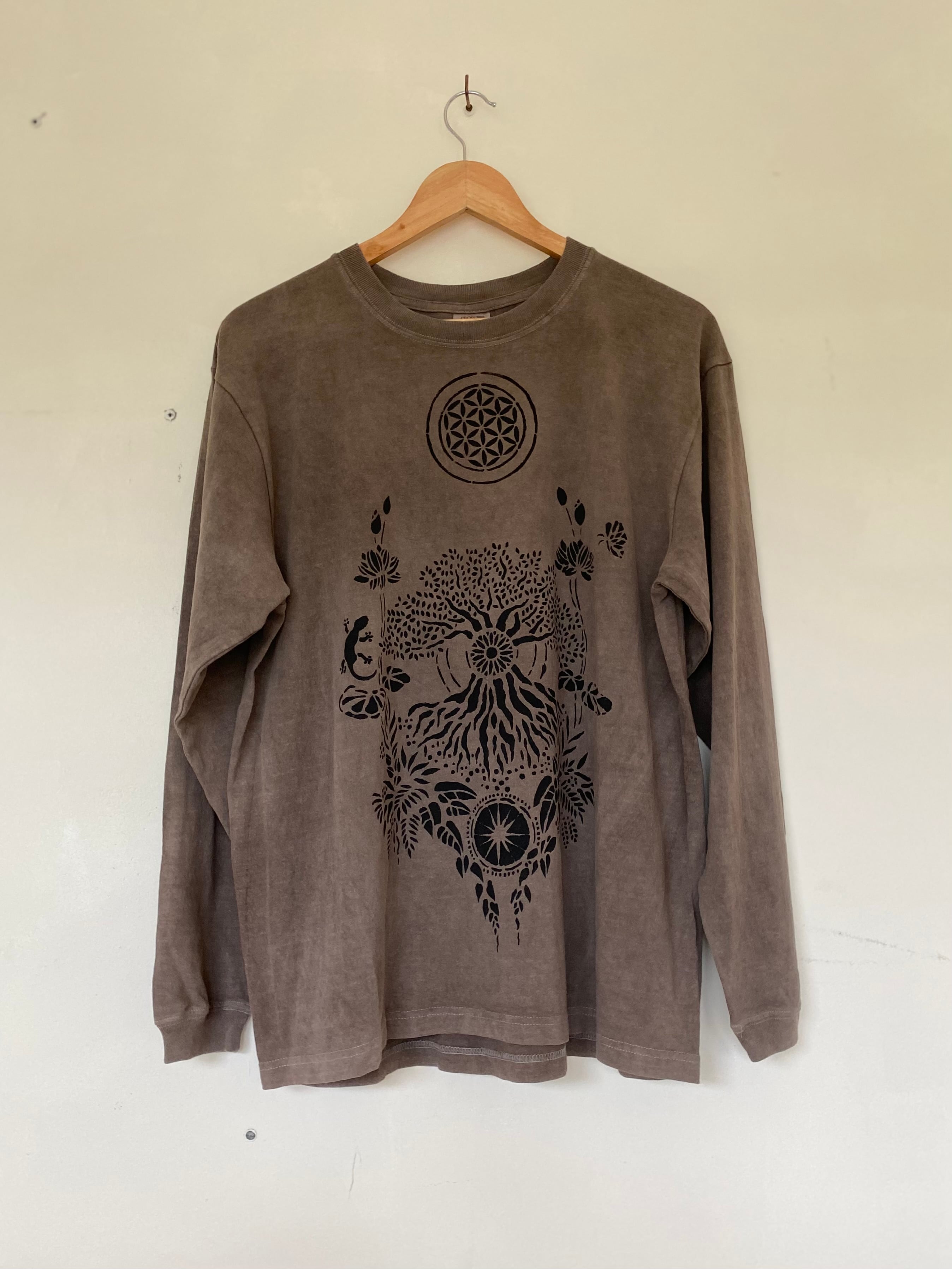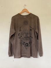 べんがらで染めたあとガジュマルのデザインを型染めしました。